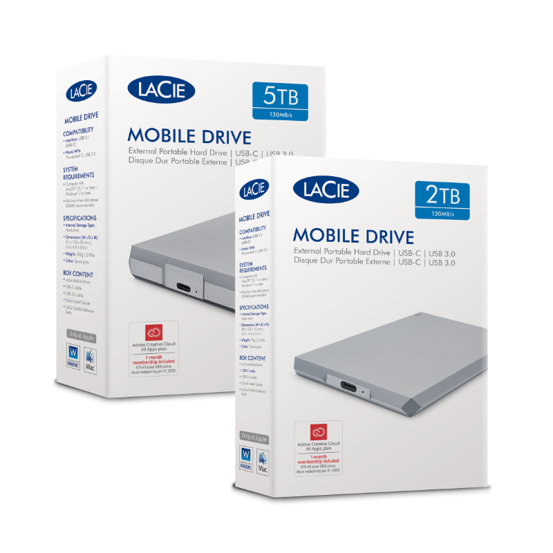Disque dur LaCie Mobile Drive 2 TB externe portable USB-C USB 3.0 (STHG2000400)